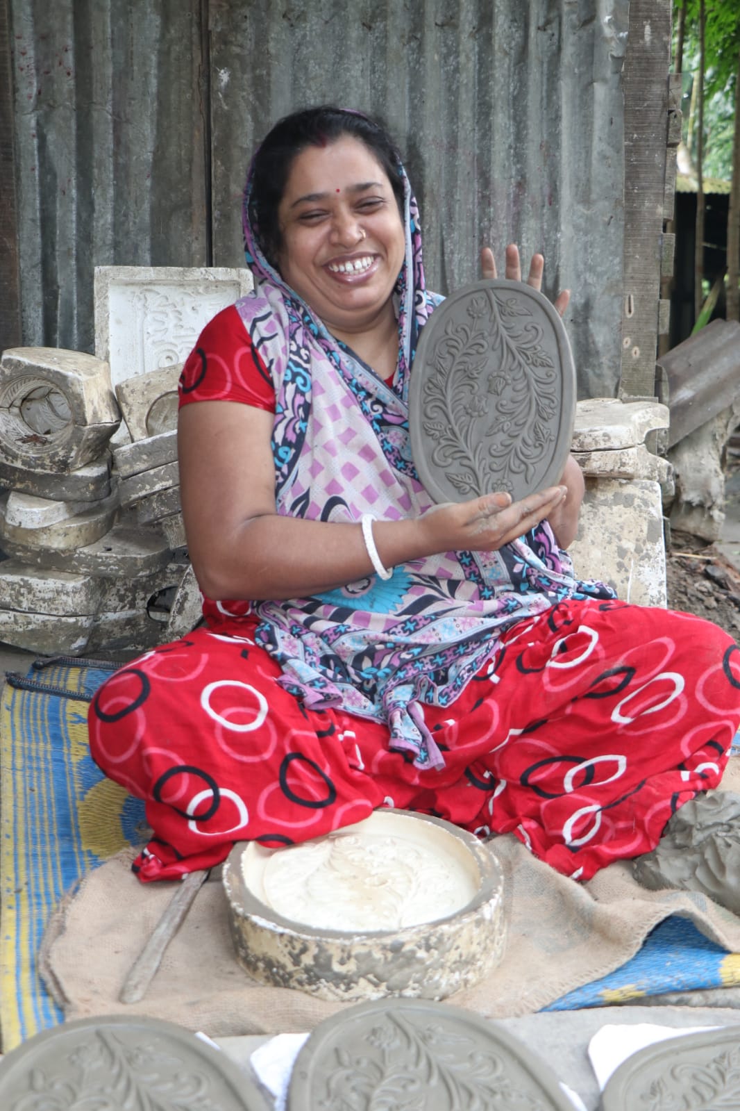 Artisans work with their generational family trained hands to mould the clay shape and imprint the design, then firing the terracotta at a high temperature to give its gorgeous unglazed terracotta finish. The strong sturdy baskets are hand woven by sturdy grass which retains its shape and can comfortably hold the weight of the stonework. The basket weaving in itself is an art!